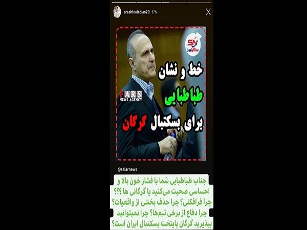سخنگوی تیم بسکتبال شهرداری گرگان با انتشار مطلبی در صفحه اینستاگرامش خطاب به رئیس فدراسیون بسکتبال نوشت: جناب «طباطبایی» شما با فشار خون بالا صحبت میکنید یا گرگانیها؟ چرا فرافکنی میکنید؟ چرا حذف بخشی از واقعیتها؟