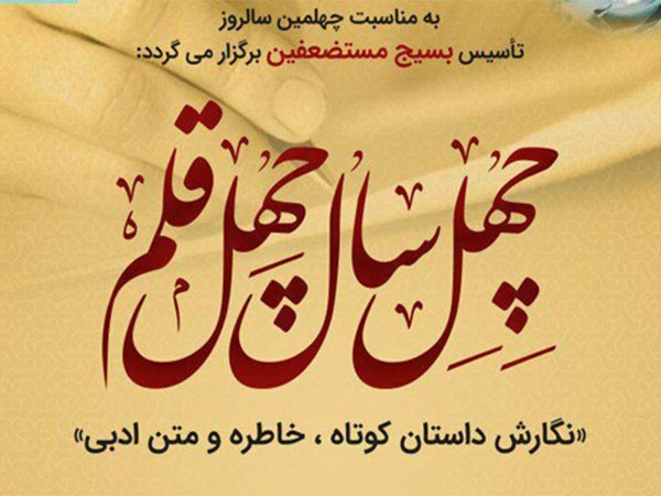به مناسبت چهلمین سالروز تاسیس بسیج مستضعفین مسابقه مقالهنویسی، نگارش داستان ادبی، خاطره و متن ادبی با عنوان «چهل سال، چهل قلم» برگزار میشود.