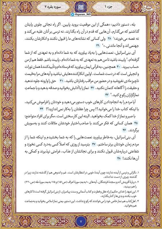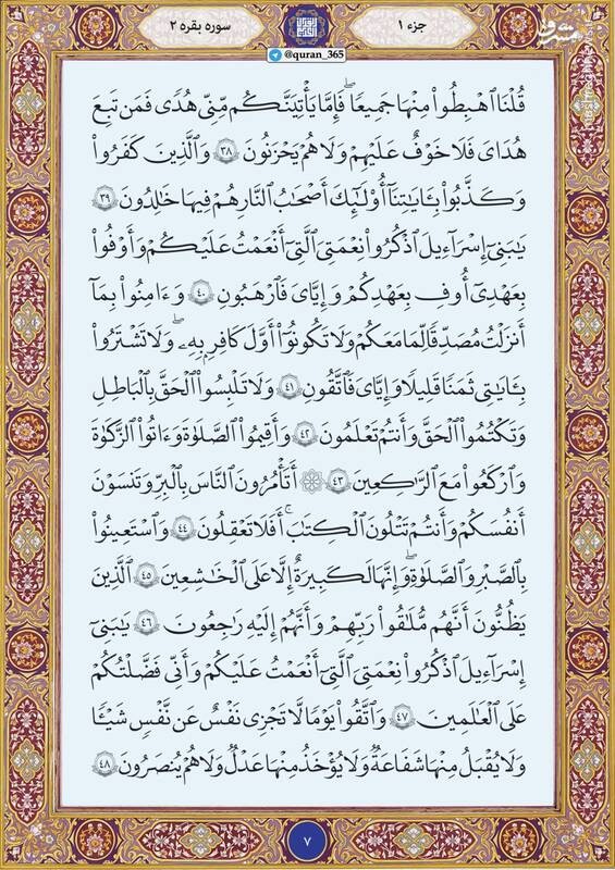 خانههای خود را هر روز با خواندن قرآن نورانی کنید، امروز صبح را با صفحه ۷ سوره مبارکه بقره (جزء اول) آغاز میکنیم.