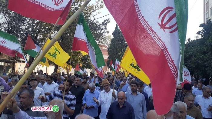 شرکت‌کنندگان با حمل پرچم فلسطین و سردادن شعارهای ضد صهیونیستی، خشم و انزجار خود را از جنایات رژیم صهیونیستی در غزه ابراز کردند.