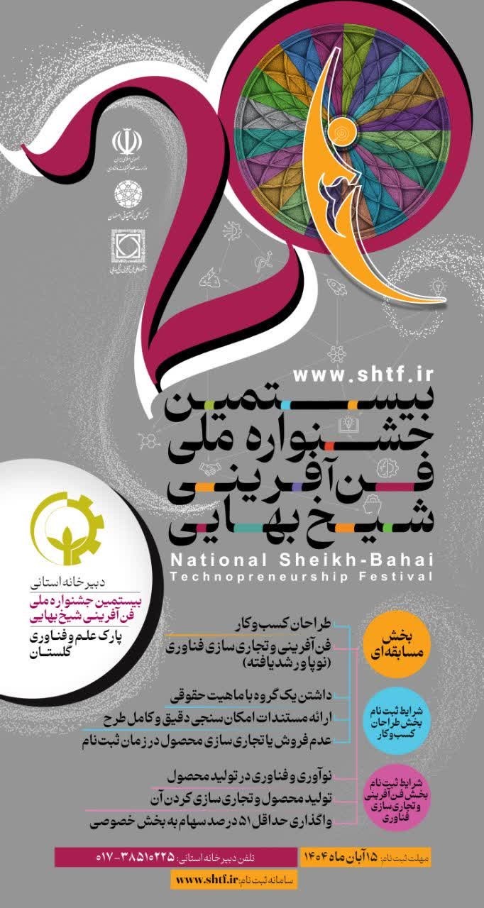 پارک علم و فناوری گلستان به عنوان دبیرخانه استانی با همکاری شهرک علمی و تحقیقاتی اصفهان بیستمین جشنواره ملی فن‌آفرینی شیخ بهایی را برگزار می‌کند.